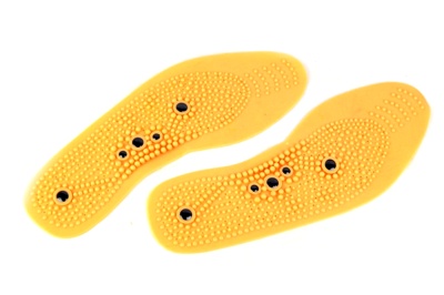 Магнитные стельки сделаны из гигиенического пластика, в основании которого встроены лечебные магнитные шарики. Небольшие эластичные шипы, выполняющие функции массажера, создают прослойку воздуха между стопой и стелькой. За счет этого достигается ряд полезных для человека эффектов. Биологически активные точки стопы получают двойной массаж — магнитный и физиологический, и при этом открывается более полный приток воздуха к ноге.